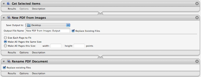 如果你熟悉Automator的話,也可以手工創建如下的工作流,然後保存為Finder的插件,效果也是一樣的: